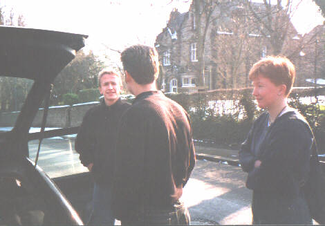 Noch fahre ich, während Stefan ruht. Kein Kilometerchen schneller als Tempo 120, um Benzin zu sparen. Auf den leeren Autobahnen in Flandern ist das problemlos möglich. Der Motor schnurrt, ich muss mich mühsam wach halten, da ich beinahe keinen Bezugspunkt habe. Bei Brügge wechseln wir schließlich. Ich unterhalte mich noch eine Zeit mit Stefan (von Jutta haben wir seit Calais kaum ein Wort gehört) und döse schließlich weg. Mit einem Mal spüre ich einen Schlag gegen den Arm. Stefan fragt, wie er bei Brüssel fahren muss und noch bevor ich zu Wort komme, sind wir mitten in Europas Kapitale. Wir haben tatsächlich das Abbiegen verpasst. Irgendwann finden wir die Autobahn wieder und da Stefan kein bisschen müde ist, setzen wir die Reise über leere belgische (normal) und leere NRW-Autobahnen (selten) fort. Bei Unna übernehme ich wieder das Steuer. Und das ist gut so. Ich kenne mein Auto (es hat keine Tankwarnleuchte). Stefan wäre bei dem Stand der Nadel längst tanken gefahren. Alle zehn Minuten bittet er mich, an die nächste Tankstelle zu fahren. Wir haben inzwischen Kassel erreicht und die Nadel ist fast unten. Letztlich habe ich in Melsungen noch 2 Liter im Tank und einen mit den Nerven fertigen Beifahrer. Ich liefere Jutta und Stefan noch bei ihren Eltern ab und falle letztlich um halb acht morgens hundemüde ins Bett... *** THE END *** |